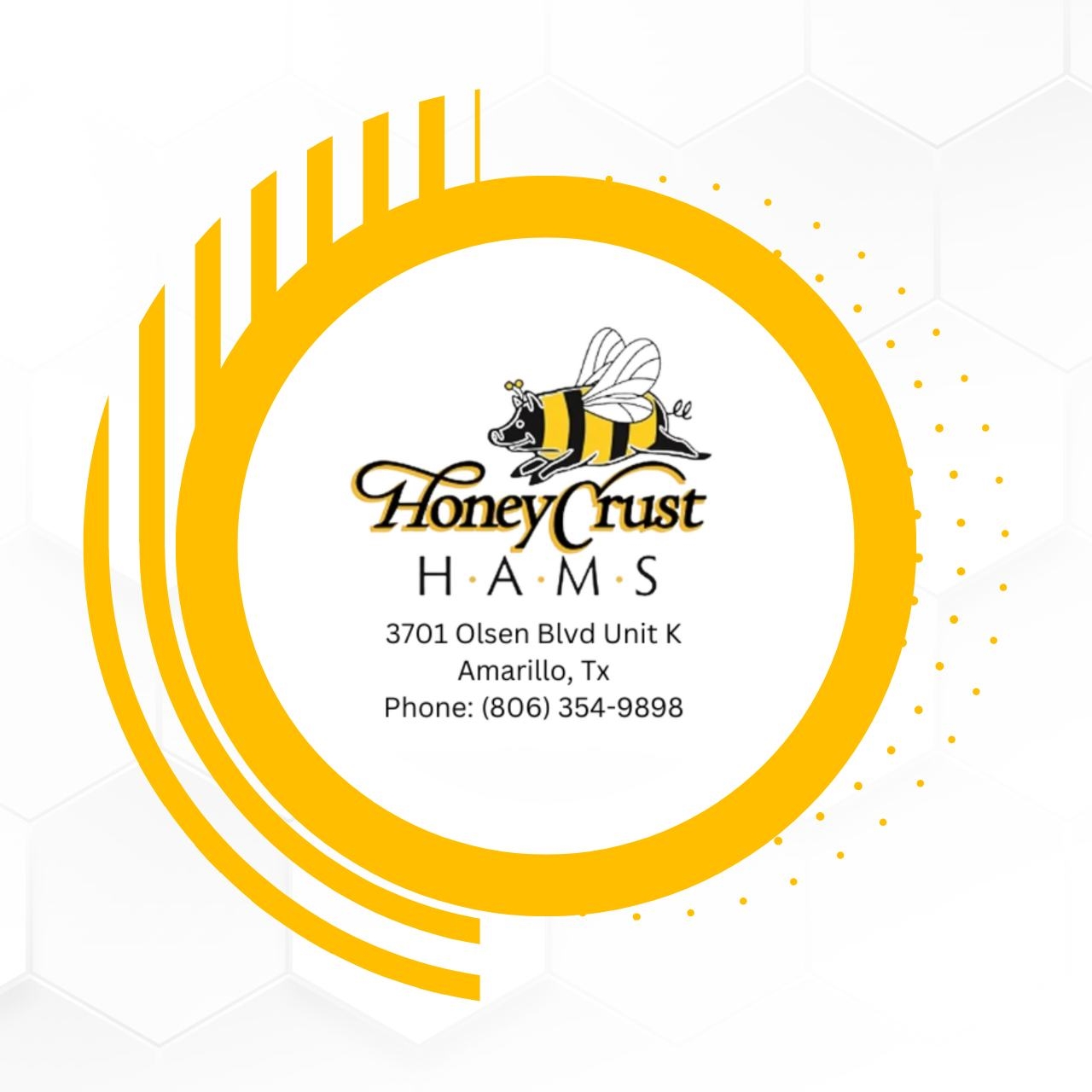 HoneyCrust Hams has been an Amarillo Family-owned establishment for 20+ years. The ingredients used originated with its founders, and Don Dunavin has inherited the formula of success. Hams are sweet, savory, and succulent for your table, outings, and special occasions. Each honey-cured ham is fully cooked and comes spiral-cut, ready to serve. Our hams are hand-prepared, fire-glazed with spices, and finished with a unique honey crust prepared for your table. Additional meats are also available.